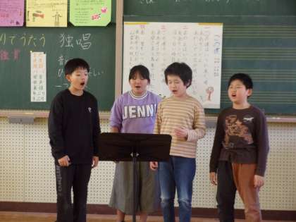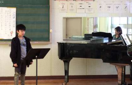 音楽科の学習で、日本歌曲の独唱をしています。作詞者が選びぬいてつくった「この道」の詩と、その言葉を生かすように作曲者が考えた旋律や伴奏を十分に味わい、ピアノと息を合わせて工夫して歌っています。フレーズの後にたっぷりの間をとる子、伸びやかに高音の声を伸ばす子、丁寧にゆっくりと言葉を紡ぐように歌う子、手振りをつけて豊かに歌う子など、一人一人の表現力が高まりました。個性あふれる美しい歌声の響きをみんなで共有し、温かい気持ちになりました。