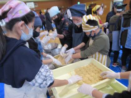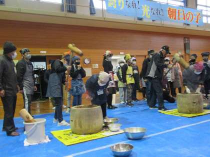 12月5日(木)もちつき会 公開日 2024/12/06 更新日 2024/12/06 学校行事 地域の方々にご協力いただき、もちつき会を行いました。おいしくなるように一人一人順番に力強くもちをつき、出来上がったもちを5・6年生が丸めました。味は、きなこ・あんこ・ごまです。5年生が育てたもち米をなかよし班でおいしくいただくことができ、とてもすてきな時間になりました。 ご協力をいただいた地域の皆様、ご参観いただいた保護者の皆様、ありがとうございました。