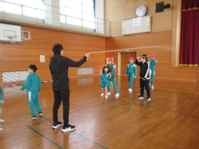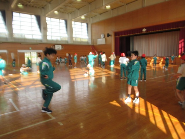 1月16日(木)体育タイム 公開日 2025/01/16 更新日 2025/01/16 朝日小学校NEWS 体育タイムになわとびをしました。チャレンジカードに取り組んで友達と回数を数え合ったり、6年生が1年生に跳び方を教えてあげたりしていました。 朝日小学校NEWS