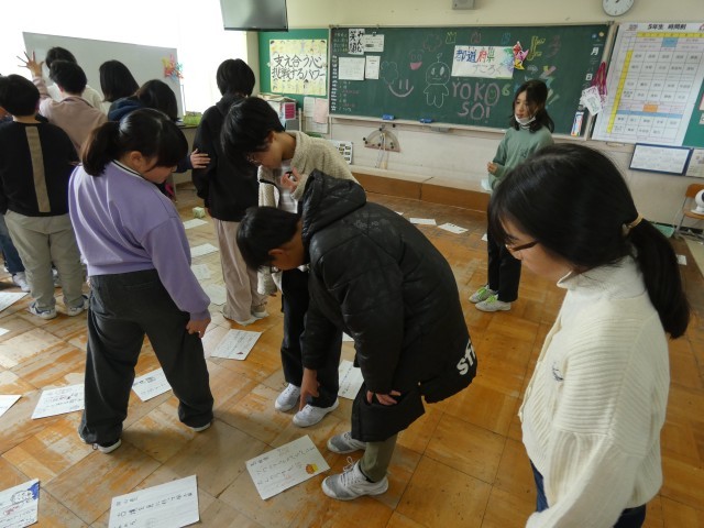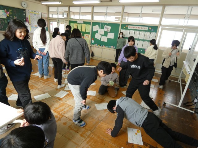 2月28日(金)5年生 6年生と遊ぼう 公開日 2025/02/28 更新日 2025/02/28 5年生 卒業お祝いプロジェクトの一環として、在校生が6年生と思い出を作ろうと各学年が考えた遊びで一緒に楽しんでいます。 5年生が6年生と都道府県すごろくをしている様子です。様々なミッションに挑戦し、ゴールを目指しました。 5年生 6年生