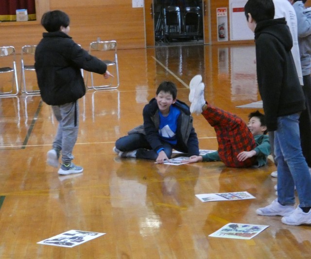 3月3日(月)4年生 6年生と遊ぼう 公開日 2025/03/03 更新日 2025/03/03 4年生 6年生と朝日カルタをして遊びました。体育館に広げられたカルタの中から、見つけ出すのは大変でしたが、6年生と楽しい思い出ができました。 4年生 6年生