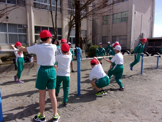 あたたかい日差しの中、久しぶりの外での体育でした。