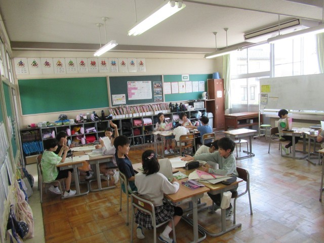 5月15日(木) 3年生 国語科の学習の様子 公開日 2025/05/15 更新日 2025/05/15 3年生 国語科「もっと知りたい、友だちのこと」の学習の様子です。今日は、友達のことを知るために、グループになって話を聞き合いました。一人ずつ話題を決めて話し、ほかの友達が質問をしました。子供たちは、大切にしているものやがんばっていることについて話したり、進んで質問をしたりしていました。 3年生