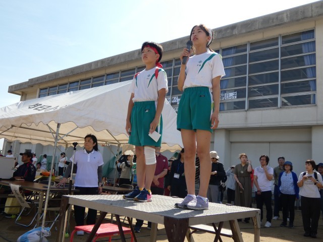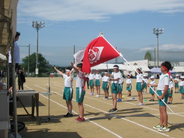 5月18日(日)運動会 開会式 公開日 2025/05/18 更新日 2025/05/18 学校行事 令和7年度の運動会を開催しました。1日順延しましたが、赤団も白団も気合い十分で開会式に臨みました。 今年の運動会スローガンは、「にこにこ・わくわく・心ひとつに かがやく朝日っ子」です。校長先生の開会の言葉や育友会会長さんからの激励の言葉をもらい、児童代表が小学校生活最後の運動会への思いを発表しました。各団の団長が選手宣誓をし、最後に全員で運動会の歌「ゴーゴーゴー」を歌いました。 学校行事