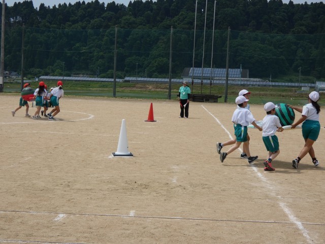 5月20日(火)運動会 スイカころころ心ひとつに輝け朝日っ子 公開日 2025/05/20 更新日 2025/05/20 学校行事 本日、延期となっていた団体競技、閉会式の一部、解団式を行いました。 団体競技で総合優勝の行方が決まるかもしれないということで、両団気合いを入れて臨みました。 上学年が下学年を思いやって運ぶ姿や、かけ声や声援を送ったりする仲間の姿がありました。まさしく心ひとつに輝く朝日っ子です。 学校行事