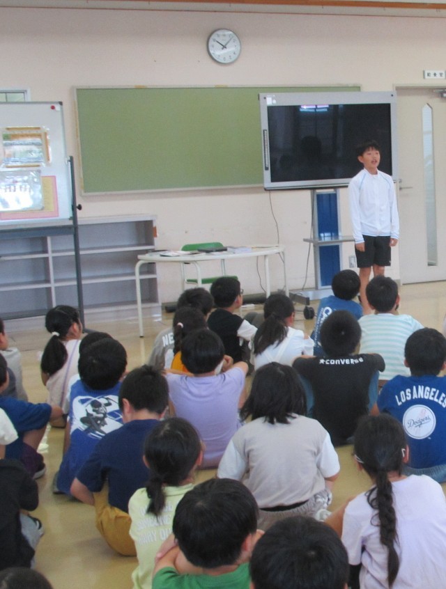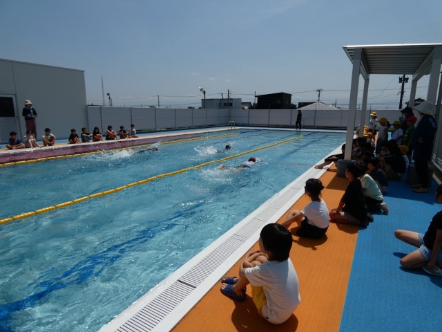 6月19日(木)プール開き・初泳ぎ 公開日 2025/06/20 更新日 2025/06/20 学校行事 プール開きでは、つよく委員の児童が代表の言葉を発表し、5・6年の代表児童が色々な泳ぎ方を見せてくれました。 初泳ぎはペア学年で行い、水の気持ちよさを仲間と感じていました。 これからも安全第一で、一人一人が目当てをもって水泳学習に取り組んで行きます。 学校行事