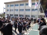 卒業式の後は、全校で集まり歓送会を行いました。天気にも恵まれ春の暖かい陽だまりの...