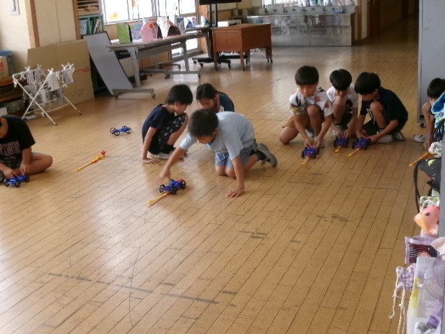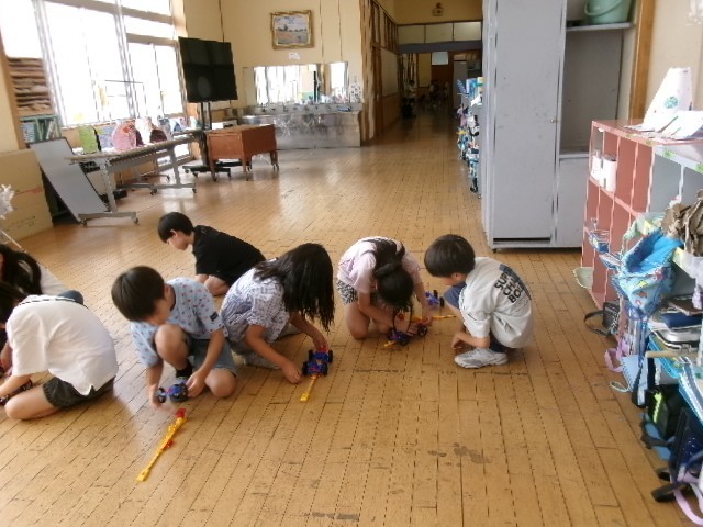 友達と教え合って車を組み立てたり、動かし方を確かめ合ったりしながら意欲的に活動を進めていました。