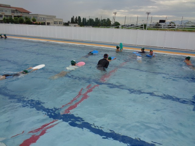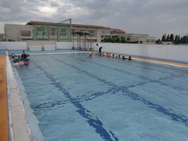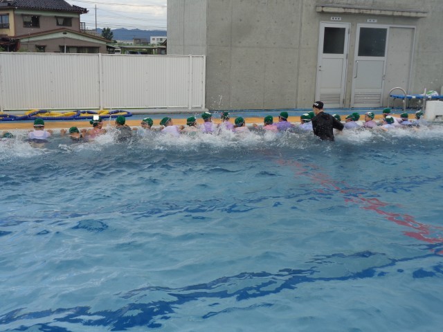 水泳教室の様子です。昨年度水に顔をつけるので精一杯だった子供たちも少しずつ泳ぐことができるようになってきています。