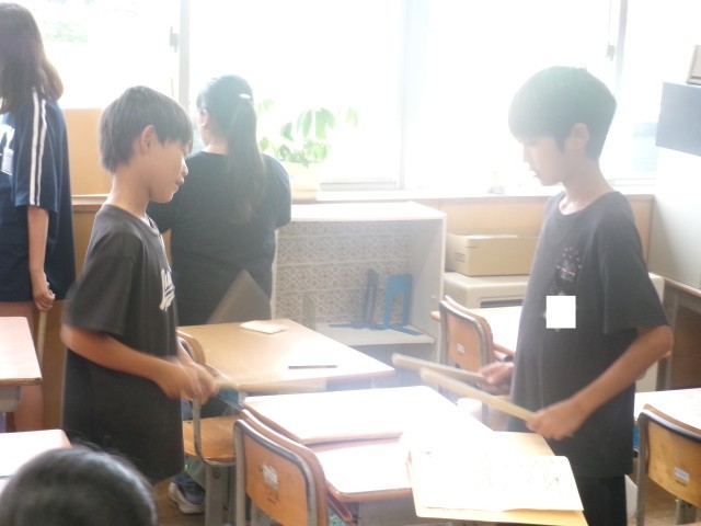 今日の太鼓げんキッズ活動では、自分の練習だけでなく、下学年に教えることを中心に行いました。下学年のことを思いやり、優しく丁寧に教えることができました。