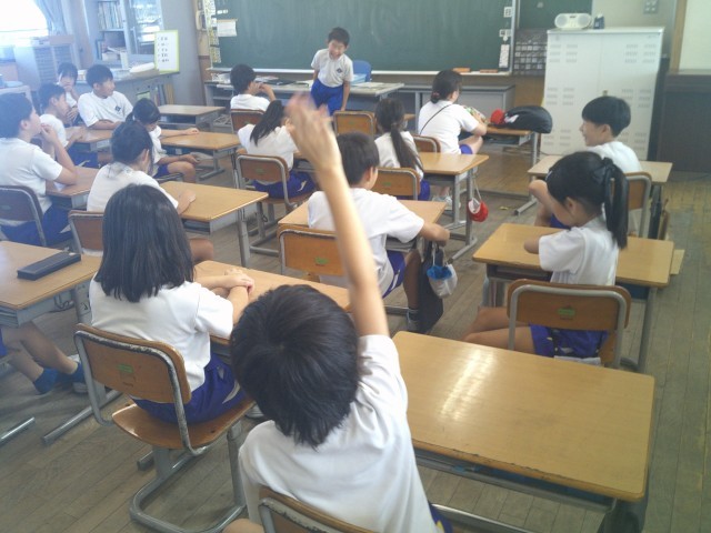 夏休みの思い出を話す場面、勢いよく手を挙げる仲間の姿が見られました。