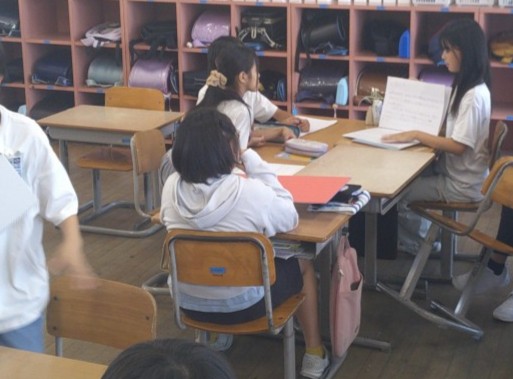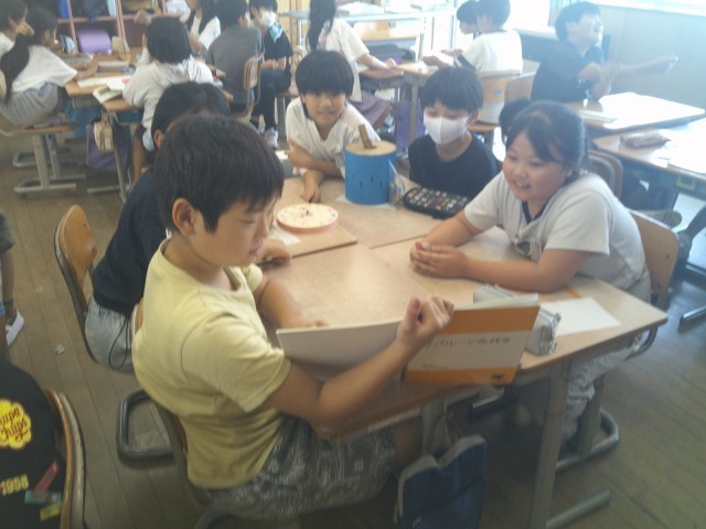 夏休みの宿題「自由研究」を紹介し合いました。「おぉ~」「すごい」と驚きの声があちこちから聞こえてきました。