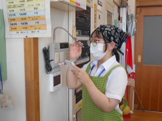 宮野小学校で教育実習が行われています。二人は宮野小学校の大先輩。お昼の放送で、自己紹介されました。