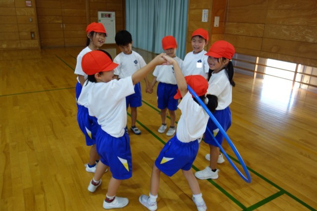 今学期初めての体育科の学習。各団で楽しみながら運動遊びに取り組みました。