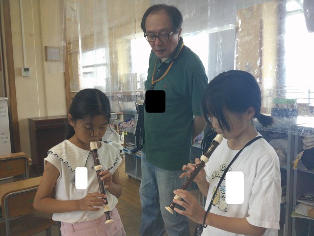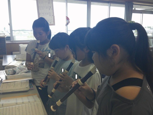 休み時間に、早速、リコーダーの練習に取り組む姿が見られ、やる気を感じました。