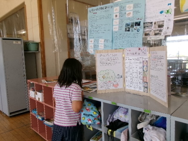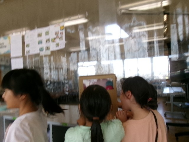 子供たちは、休み時間にも、互いの作品を見合っていました。