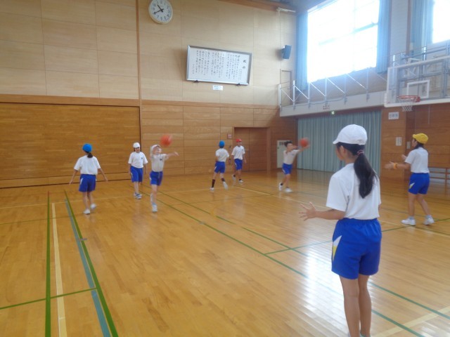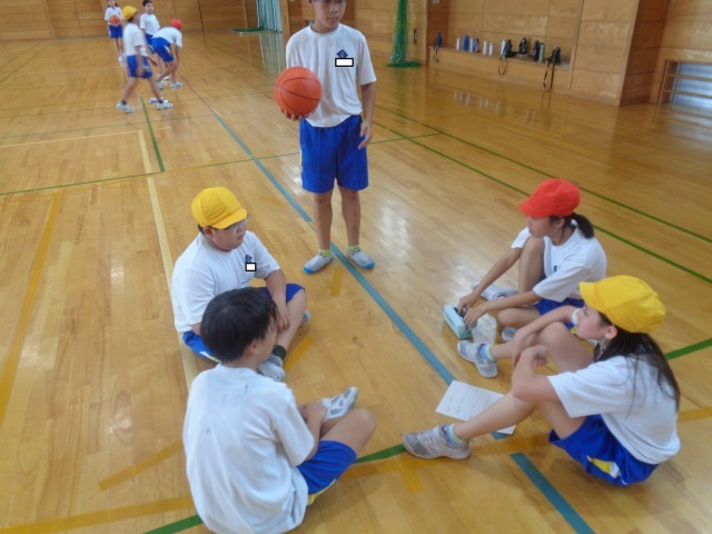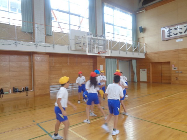 今日の体育では、パス練習後、バスケットボールの練習試合を行いました。