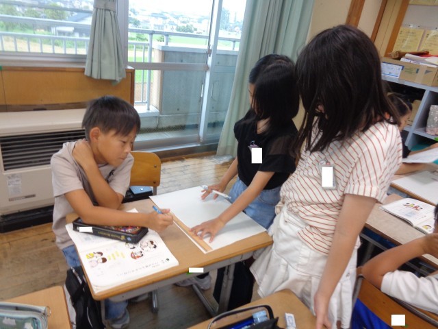 国語の学習では、あったら良いなと思う係について考え、グループで話合い、まとめました。自分では思いつかなかったような係を考えている友達もいて、考えが深まりました。
