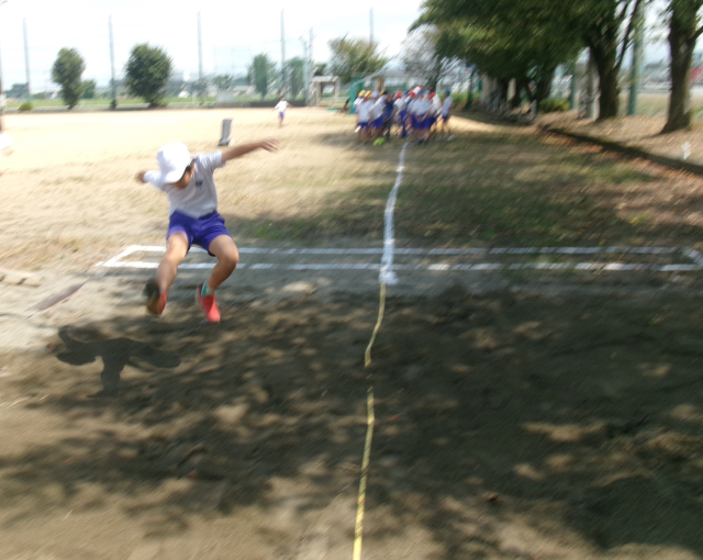 今日は、走り幅跳びのコツを学び、コツを生かして学習に取り組みました。斜め上を見て跳ぶことや、両手を上げることなどにチャレンジし、記録の伸びを感じることができました。