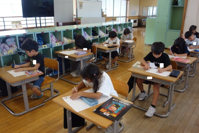 2学期から漢字の学習に取り組む子供たち。学習の成果を確かめるために、ミニテストを行いました。