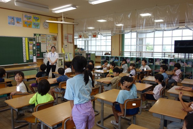 今日は、教育実習生の先生が一日学級にいらっしゃいました。先生に質問をしている様子です。質問に答えてもらい、嬉しそうな子供たちでした。