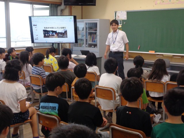 社会科では、県内の伝統や文化について学習しています。「おわら風の盆はどのようにして受けつがれてきたのだろうか」と、一人一人が調べてまとめています。今日は学年合同で授業を行い、清水先生からいろいろなお話を聞くことができました。最後には、児童から質問も出て、学びを深めていました。