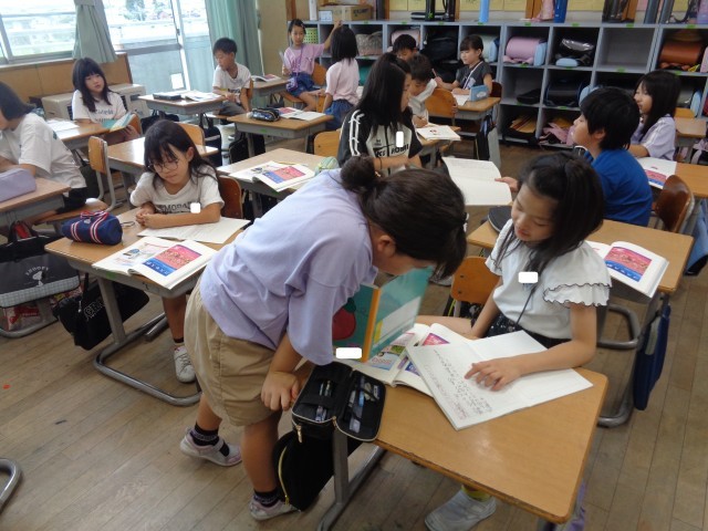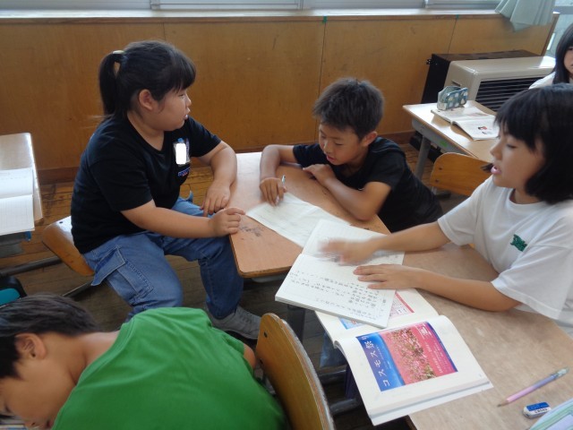 国語の学習では、ポスターの工夫を読み取る学習を行いました。同じテーマの2つのポスターを見てどちらの方が行きたくなるかを比べた際には、さまざまな理由から意見が分かれ、どんな人に向けたポスターなのかも考えました。