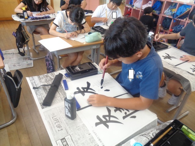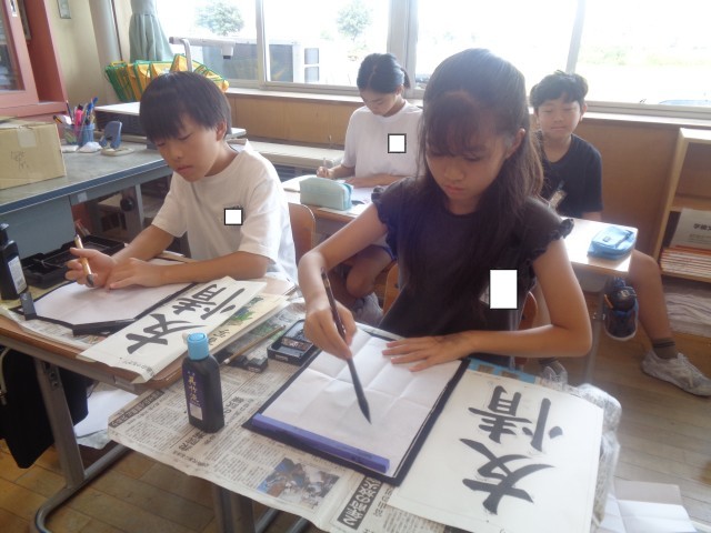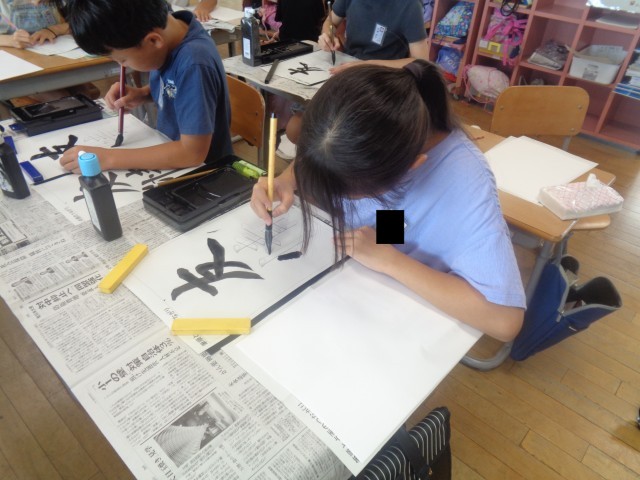 国語科で行っている書写では「友情」という字を練習しています。子供たちは集中して一筆に思いを込めて書いていました。