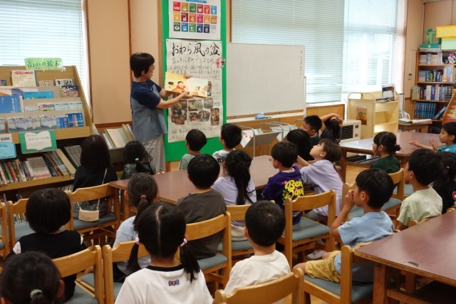 今日読み聞かせをしていただいた絵本は「おこだでませんように」。自分の生活と重ねながら、お話を楽しみました。