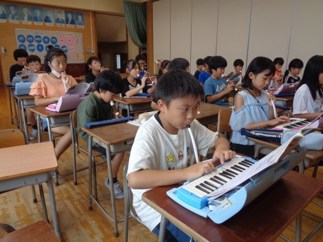 「茶色の小びん」では、リコーダーと鍵盤ハーモニカの音色の違いを感じながら、演奏しました。