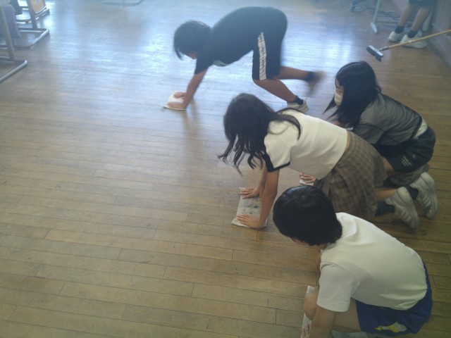 掃除担当場所を回っていると、力いっぱいそうじする姿をあちこちで見かけます。成長の証です。