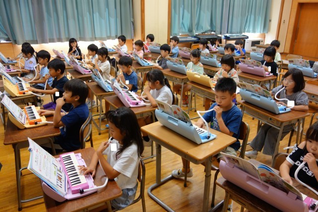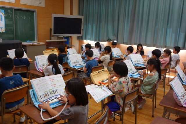 鍵盤ハーモニカの学習の様子です。正しく演奏できて嬉しそうな子供たちでした。休み時間も鍵盤ハーモニカに親しむ子供たちがたくさんいます。