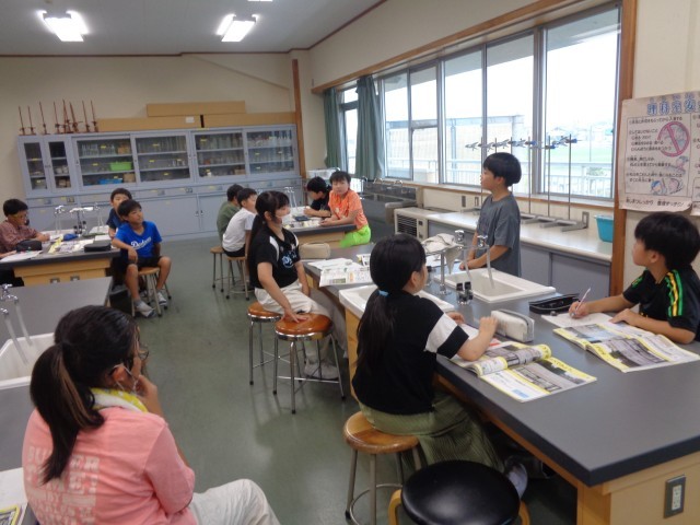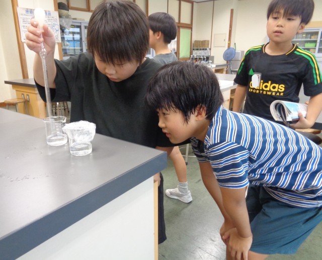自然の中での水の行方について、生活経験や既習の内容を基に予想を立て、話し合いました。同じ量の水を入れたビーカーを2つ準備し、ラップをかぶせた物と、かぶせない物とを比較しながら観察していきます。