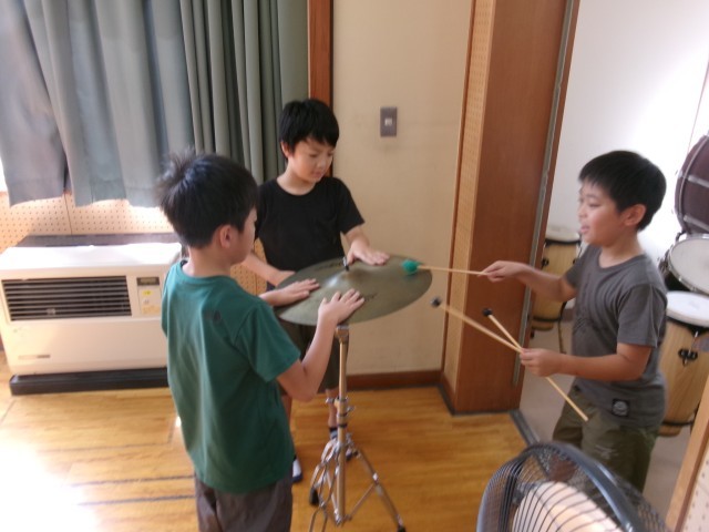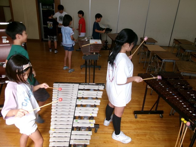 音楽の授業では「茶色のこびん」をやっています。合奏をするためにさまざまな楽器に触れています。
