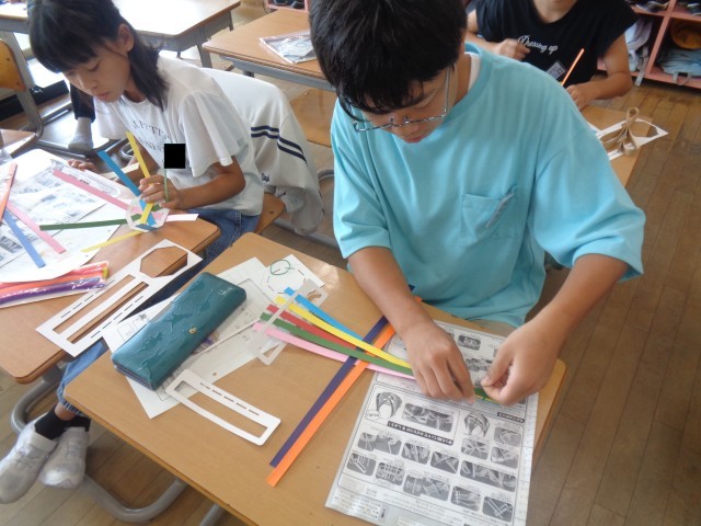 図画工作科「つないでくんで」では、小物入れやペンケースを作成しています。