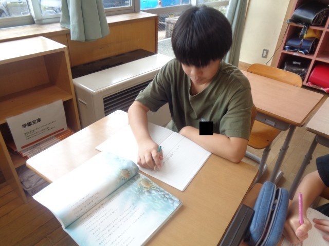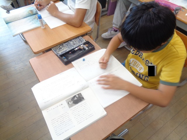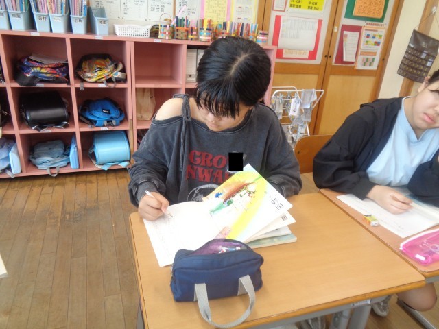 今日は、やまなしの感想を書きました。子供たちは「クラムボンって何だろう・・・」「5月と12月の違いは・・・」と深く読み進めていこうとしていました。この後は、宮沢賢治について知り、やまなしを読み進めていきます。