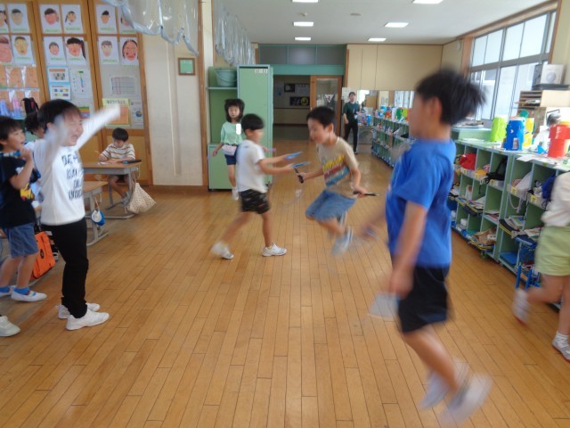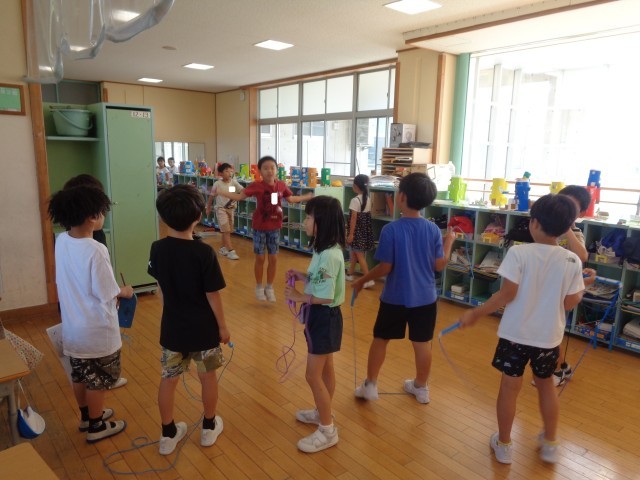 休み時間、子供たちは思い思いに過ごしています。今日は、特別に鍵盤ハーモニカによる「村まつり」の特訓が入りました。また、急に、縄跳びが流行りだしました。休み時間に、縄跳びに夢中になっている1年生の影響でしょうか。