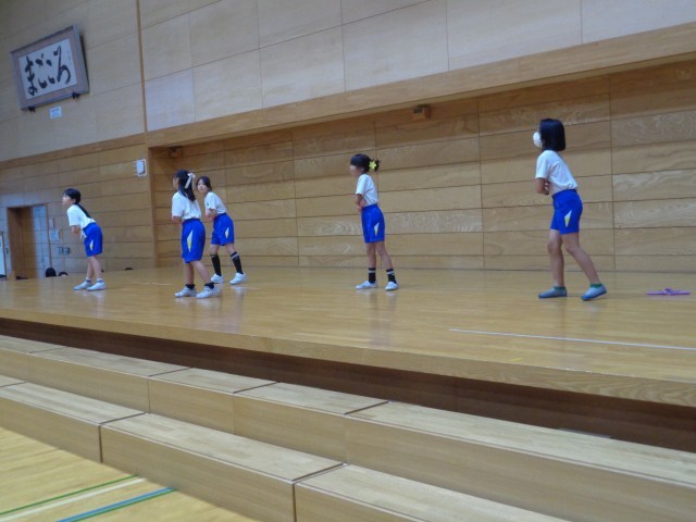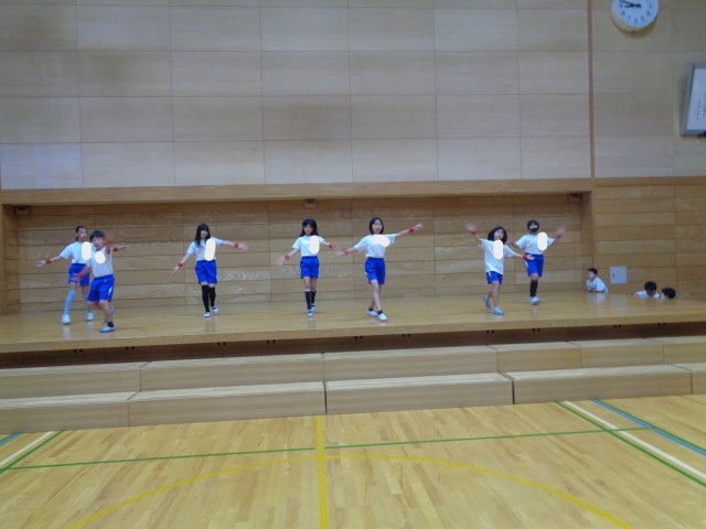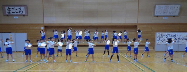 学習発表会に向けて、全体の演技の流れを確認しました。「心を一つにする」を意識しながら、グループ演技、そして、全体演技をさらに高めていこうと取り組んでいます。