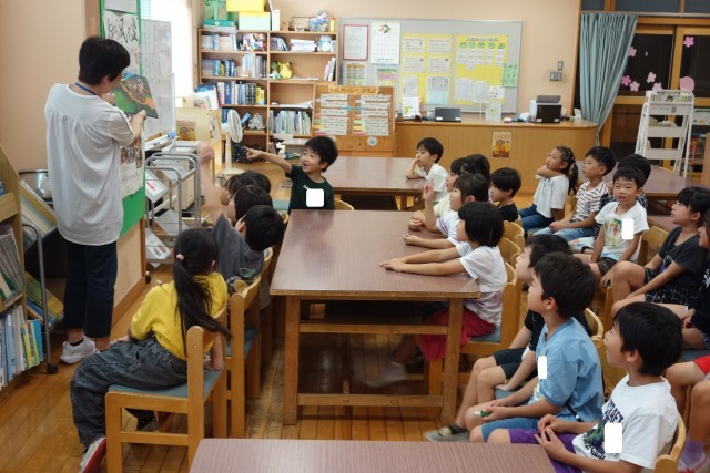 同じ話を2回聞きます。1度目と2度目を聞き比べて、変わったところはどこかな? よく聞いて、子供たちは見つけることができたようです。