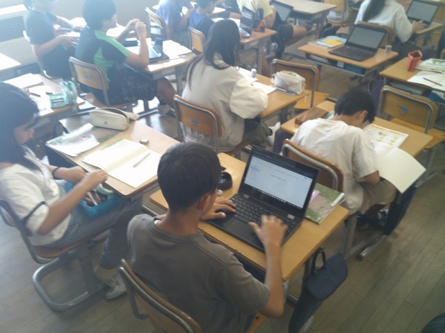 理科の学習のまとめの場面です。ノート、ドキュメント、スライドのうち自分で選択して学習をまとめました。自分に合った方法を選びながら学習を進めていきます。
