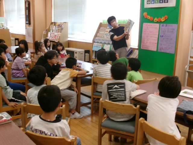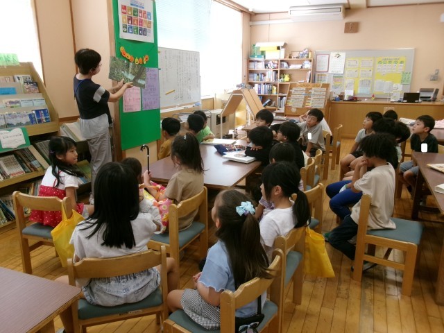 ハロウィンにちなみ、ちょっぴり怖いお話を読み聞かせていただきました。「かっぱ」にまつわる話で、子供たちは本当に怖そうでした。