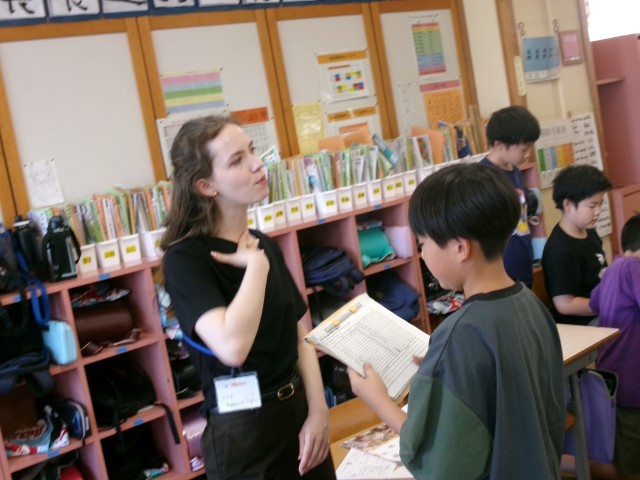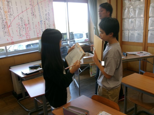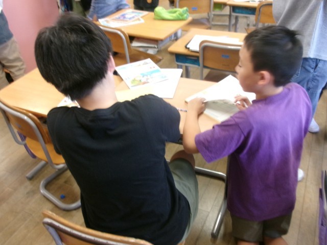 「自分の街を作ろう」という外国語の学習で、自分の街に造りたい建物は何かを英語で質問し合いました。発音を意識し、自信をもって質問に答えることができました。