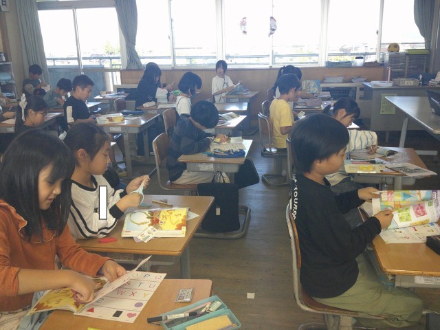 今日の外国語の学習では、友達同士で、「What □ do you like?」と聞き、答える学習をしました。
