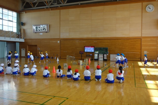 体育科の学習の様子です。ルールをや学習の流れを知り、デモンストレーションゲームを行いました。
