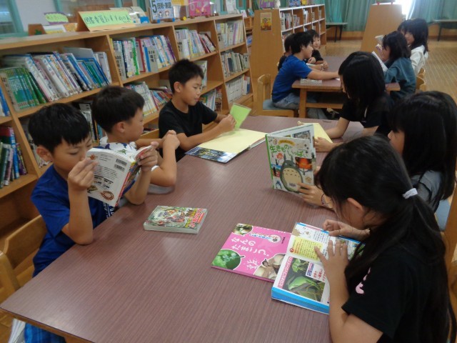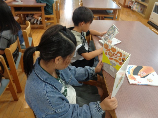 図書室での学習では、季節にあった本を読み聞かせしてもらい、自分の好きな本を借りました。