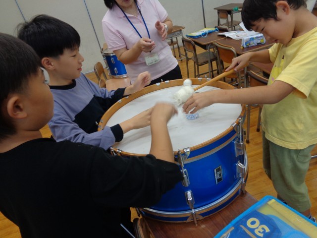 手で触るだけでなく、ビーズやピンポン玉を置いたことで目で見て揺れていることが分かった子供たちは大興奮な様子でした。