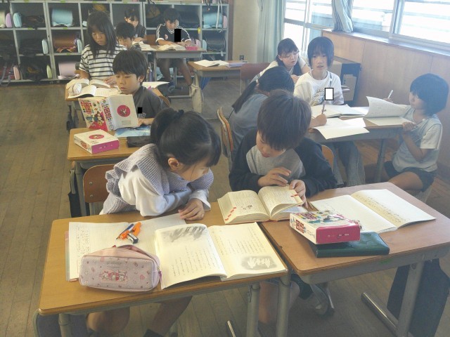 今日は、自分で音読した後、意味がよく分からない言葉を国語辞典で調べました。