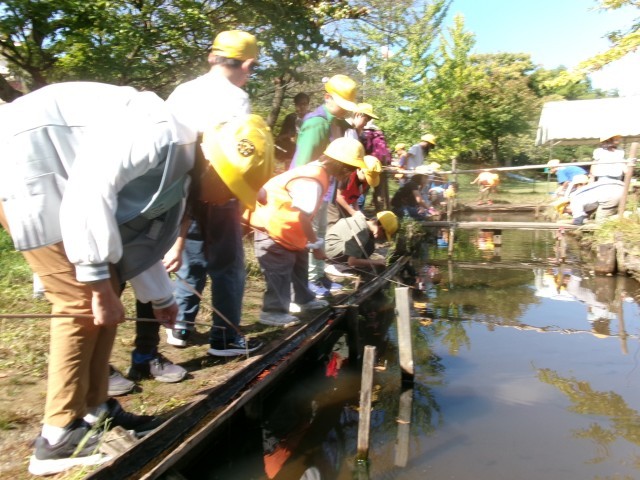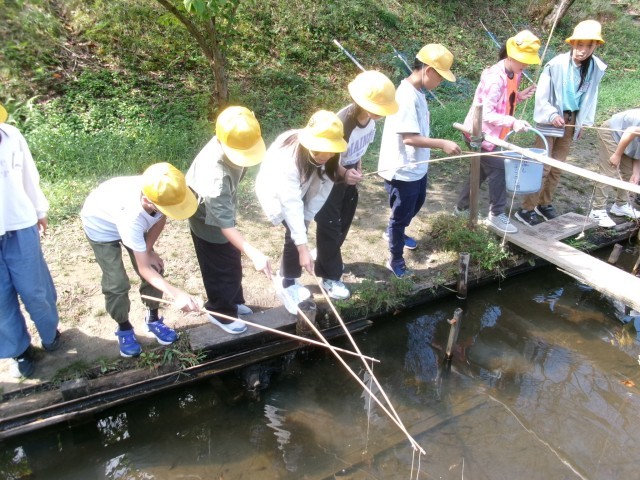 2つ目の活動では「ザリガニ釣り」をしました。怪しかった天気も無事晴れ、全員が楽しく笑顔いっぱいで取り組みました。集中力を切らさず、班で協力した結果、全体で60匹以上釣ることができ、9・10月で呉羽青少年自然の家に訪れたどの学校よりも多くザリガニを釣ることができました。