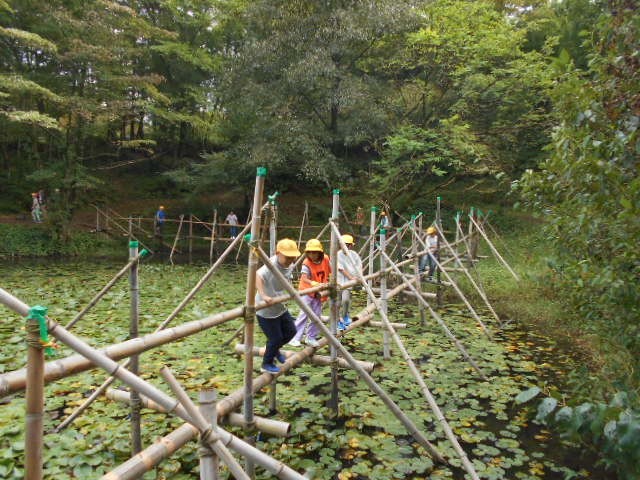 3つ目の活動では「池あそび」を行いました。ハラハラドキドキしながら全力で楽しんでいました。体全身を使って遊ぶ姿がたくさん見られました。