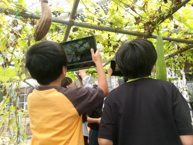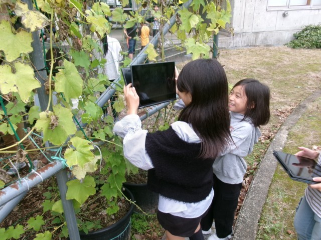 理科の授業では、すずしくなってきて植物がどう変化しているのかを調べるために、クロムで写真を撮り、観察を行いました。